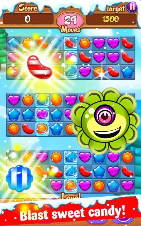 - Match and collect candies in this amazingly delicious puzzle adventure guaranteed to satisfy your sweet tooth! Blast 4 candies to get horizontal or vertical strip, used to destroy all game objects on its way. Blast 5 candies to get candy package bonus, used to destroy all game objects around (9 items) on its way. Blast 6 candies to get multicolour bomb, used to destroy all item the same color which has been combined.