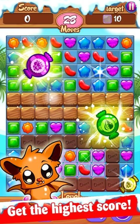 Play Candy Blast now, a great match 3 puzzle game with cute arts and effects.