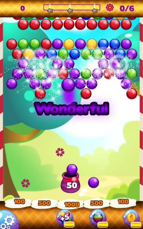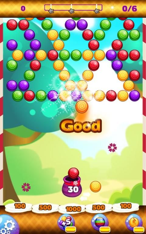 - Tap and hold the screen to use aiming shoots, that helps you to navigate direction of candy bubble easily.
