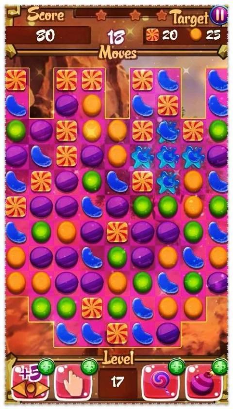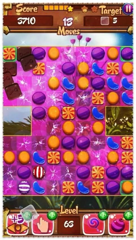 البحث الحلوى مماثلة، ونفس اللون وربطها في خط. لذلك تحتاج إلى نقل الحلوى إما إلى اليسار أو اليمين أو أعلى أو لأسفل. جمع الحلوى في صف واحد أكثر من ثلاثة والحصول على المجموعات المتفجرة وشكا من السلطة! خلال نظارات يمكنك شراء في متجر والحلوى القنابل، وأنها سوف تساعدك على التعامل بشكل أفضل مع المستوى.