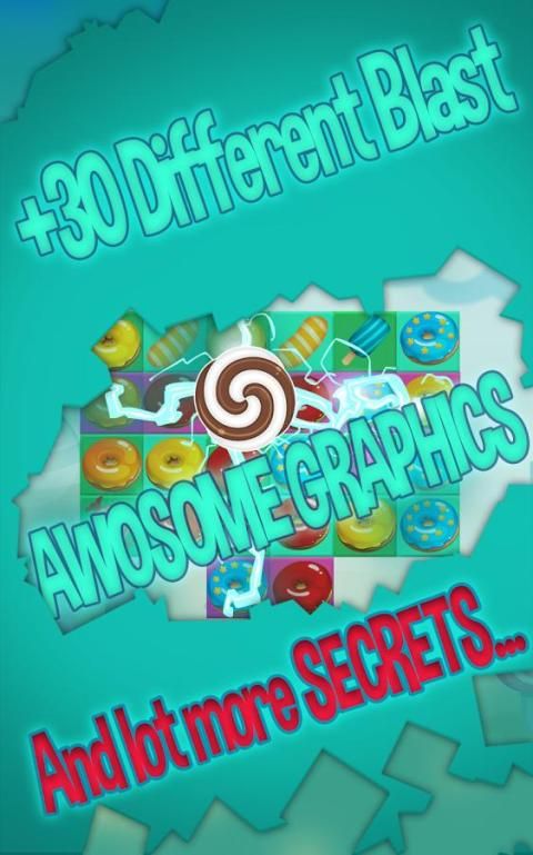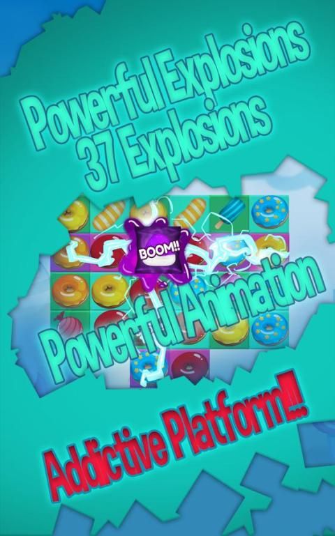 وسيتم سحق الحلوى الملونة / الكعك عند مطابقة 3 من نفس اللون في خط. عندما المباراة أربعة من نفس السكر اللون، والخط كله أن يكون انفجار. أكثر من نفس الحلوى اللون معا، وآثار أكثر مذهلة هناك سيكون. انفجار مذهلة، وقوة سرية لاكتشاف!