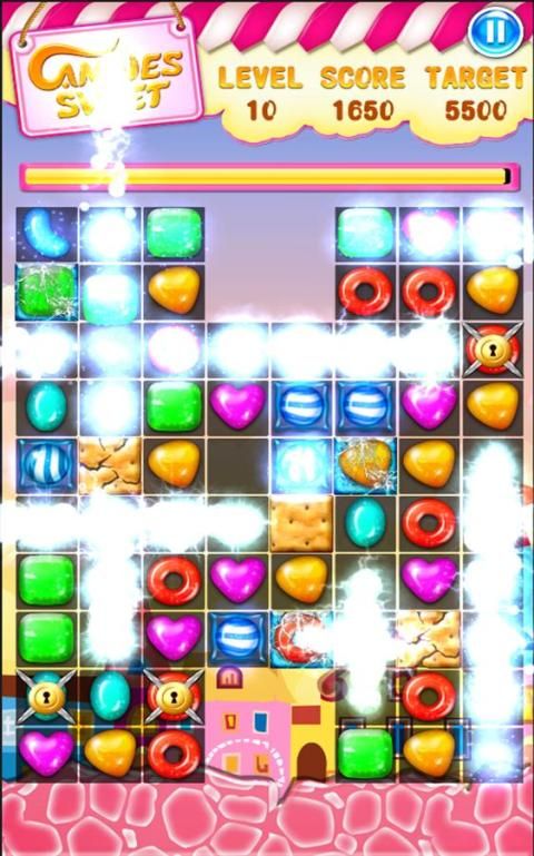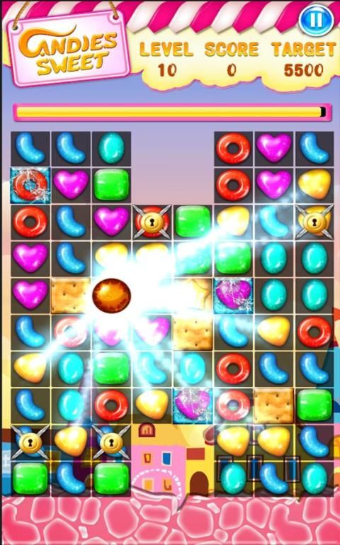 المباراة ثلاثة أو أكثر من نفس الحلوى لجعلها تزدهر، سحق لهم! تصل إلى النتيجة المستهدفة أو جمع الحلوى للانتقال إلى المستوى التالي.