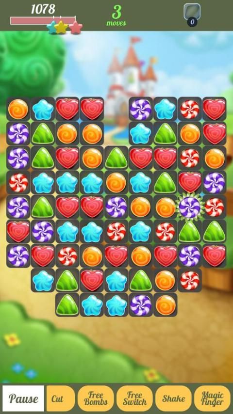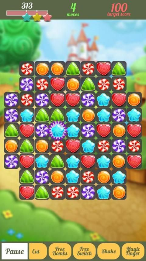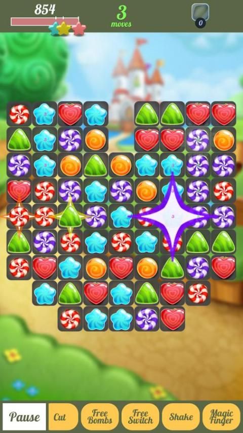 ربط الحلوى لمباراة 3 أو أكثر من الحلوى نفسها، أكثر لفترة أطول الاتصال، المزيد من النقاط.