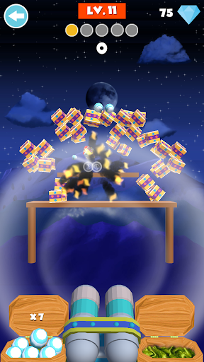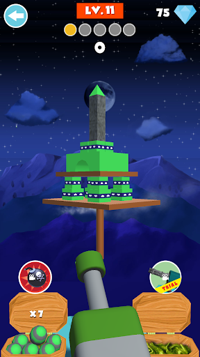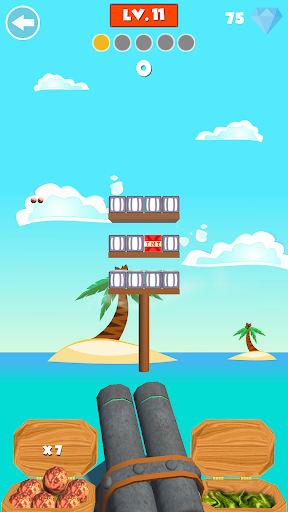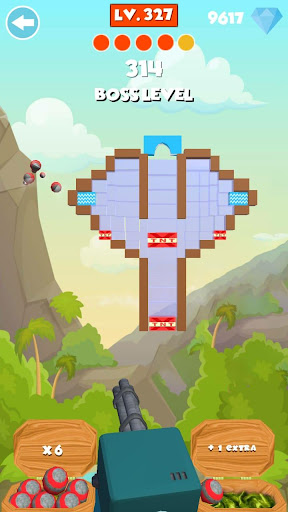 يمكن لاعب استخدام المدافع لضرب الهدف. هناك العديد من أنواع المدافع المختلفة مع صلاحيات مختلفة، مثل القنبلة براعم الكرة متعددة. لإكمال المستويات التي تحتاجها لتدمير أنواع مختلفة من الأهداف. يمكن أن تساعدك مدافع قوية على إكمال المستوى دون صعوبة كبيرة. الكائنات المستهدفة هي وجود أشكال وألوان مختلفة، مثال؛ صناديق، صندوق خشبي، كائن زجاجي، وجه رئيسه، قنابل TNT، إلخ.