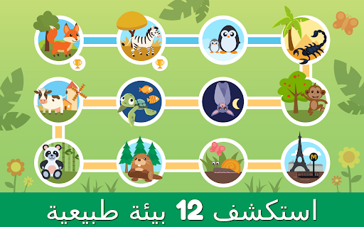 إلى أكثر من 12 بيئة طبيعية مختلفة وتعلم كيفية ايجاد وتحديد الحيوانات