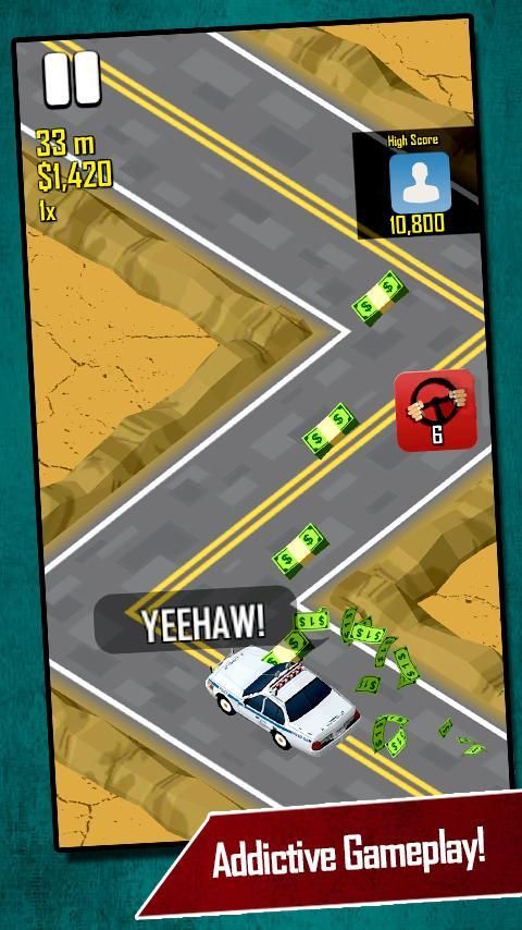 Just tap to tilt your automobile while racing and evade crashing. Evasion of the twists and turns as you collect cash will boost your score. As you play on, you get faster using nitro, increasing your difficulty for handling. Crashing the car while on the run will lead to its destruction and the game will get over.