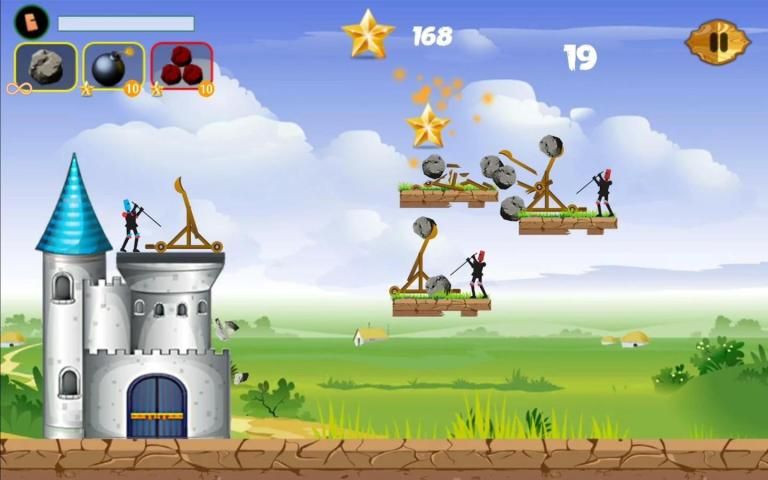 Throw the stones from catapult on the enemy to complete the missions. This catapult fight game has a simple intuitive control. Tap on the screen and pull to charge the catapult and select the tension force. Release to launch the projectile into the enemy. In the "Catapult Fight" game you must help the stickman to defend his castle from the siege weapons of the enemy.