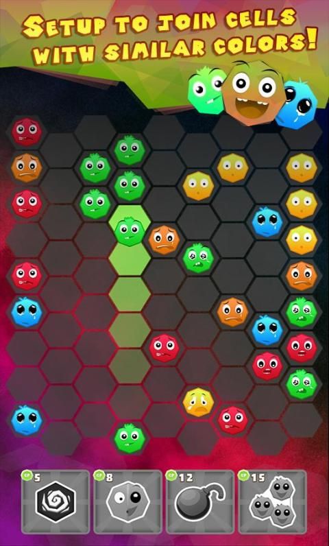 سحق الخلية الممرات لغز لعبة استراتيجية مع الميكانيكا بسيطة. تطابق ستة أو أكثر من الخلايا الملونة نفسه وكسب العديد من النقاط كما يمكنك.