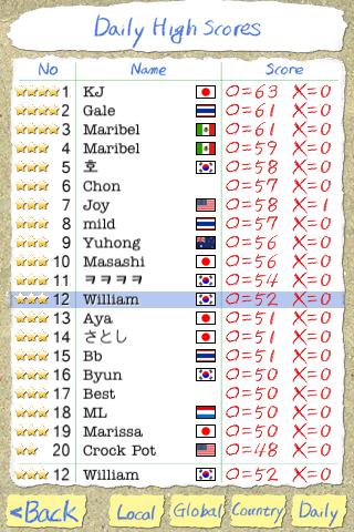 • Global/Country/Daily/Local high scores is supported.