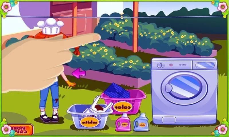 لعبة غسيل الملابس وتنظيفها في الحمام , العبي لعبة غسل الملابس باليد في الغسالة وتجفيفها ونشرها وكيها وتطبيقها العاب تنظيف الملابس طبخ فى الغسالة ابدء وتعلم مع الفتاة النشيطة التى تعشق ان تساعد الناس فى البدء فى غيسل وتنظيف الملابس اولا عليك تقسيم الملابس الى ملونة وبيضاء وضع الملابس فى سلة الهدوم المخصصة لها على ان تاخذها بعد ذلك الى الغسالة وان تظبط النظام على حسب ما تريد وتضع المسحوق فى الغسالة مغ لعبة الأميرة وتنظيف الملابس اكوى التى شيرت والبنطالون والقميص وجميع الملابس كى الملابس يعتبر الكوى من الضرورات الحياه الان كى تكون مظهر للناس حضارى وايضا الكوى يقتل الجراثيم فى الملابس ولكى تقوم بالكوى السليم حرك الضغط عليه على الجزء المراد فرده وتجنب الانتظار عليه فتره طويله حتى لا تضر الملابس ابدء وغسل ملابسك كلها و لعبة غسيل الملابس العبها الان باقصى سرعة اون لاين
