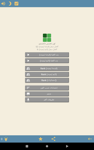 The 'Statistics' menu displays user's cumulative color perception score, which is based on user's game play. You can compare your highest level to the level of other players around