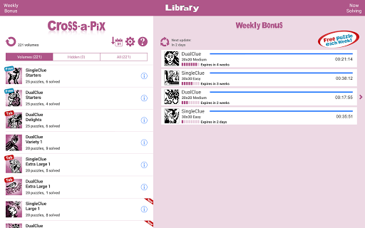 للمزيد من المرح، يتضمن Conceptis Cross-A-Pix قسم مكافأة أسبوعي يوفر لغز مجاني إضافي كل أسبوع.