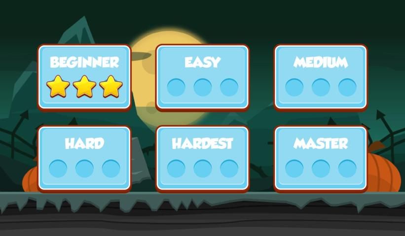 * 6 مستويات مختلفة من السهل واحدة تصل إلى الصعب حقا واحدة
