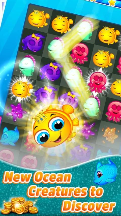 ربط المحيط سحق سحق السمك هو لغز لعبة مذهلة على أساس شعبية جدا مطابقة 3 اللعبة. تلعب من خلال كل مستوى على أمل أن تصل إلى النجوم لفتح مستويات أكثر تشويقا.