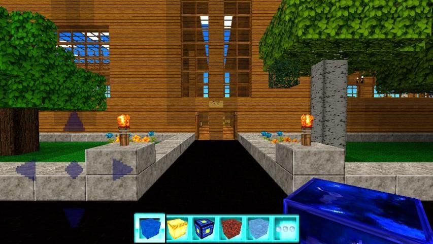 في التي هي الشخصية الرئيسية! بناء منزل من الكتل والطرق والجسور والأنفاق والكهوف والمنتزهات مع مختلف الأشجار،