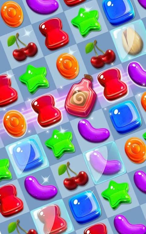 • المباراة 5 الحلوى الحلو في صف واحد للحصول على قنبلة الخاصة قوس قزح الملونة.