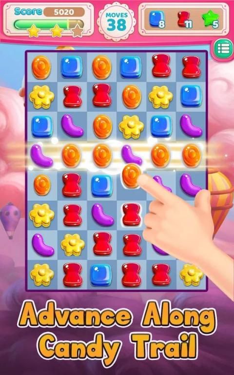 السفر على طول الخريطة السكرية، قم بزيارة مواقع مثيرة ومباراة وسحق كل الحلوى لاستكمال المستويات! الاستعداد لساعات من المتعة التي لا تنتهي والتقدم على طول كاندي تريل، وجمع التعزيز مذهلة، والفوز المكافآت مثيرة!