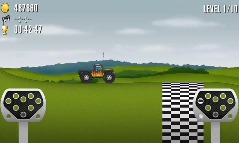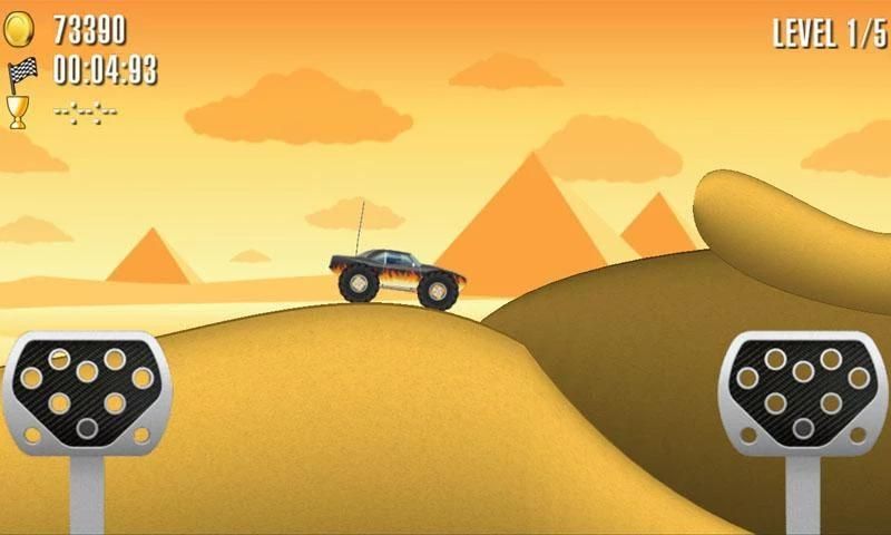 - التحكم مشابه لسباق تسلق هيل، اضغط على دواسة اليسار لكسر وجبهة الوجه والاستفادة من دواسة الحق في تسريع والقيام الوجه الخلفي مع شاحنة الوحش الخاص.