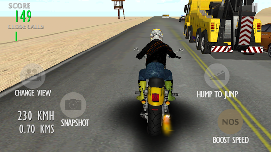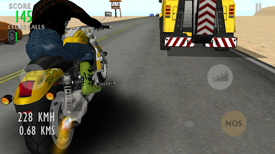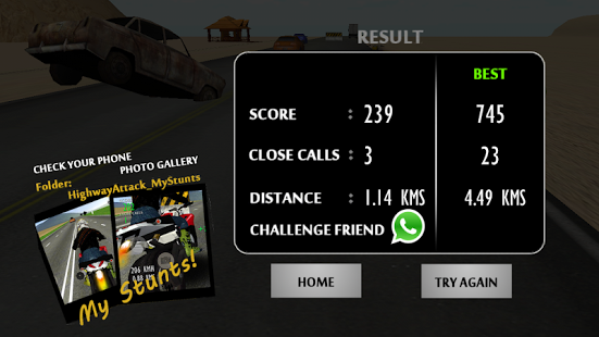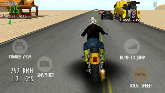 CAPTURE & SHARE YOUR OWN STUNTS via Facebook, Whatsapp, Twitter, email etc Desert Attack: Moto King 2015, is one of the BEST Motorcycle games available for smart phones till date. You are on a challenging mission of escaping an extreme highway attack. Use your extraordinary driving skills to avoid the dangerous trucks, lorries, traffic cars, damaged vehicles thrown out of the trucks, check posts and crossing trains. Ride as long as you can and earn more close calls and enjoy capturing the stunts you perform and share it with your friends.