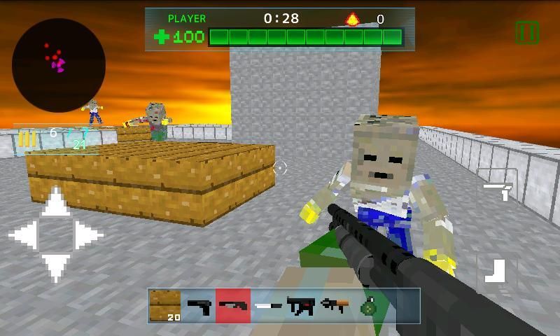 سلاح مختلفة مثل Machingun، البندقية، Deagle، قنبلة يدوية، آر بي جي، سكين، AR.