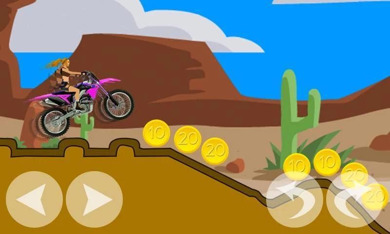 Help and control Jessie’s Moto from start to finish line to complete each level. She must go through the entire dangerous slope on desert hill cliff in order to complete each level.