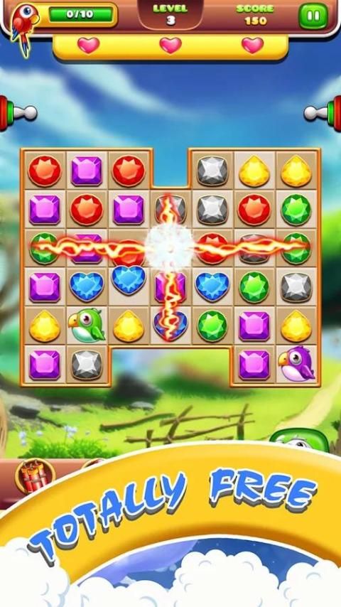 هذه هي لعبة رائعة فعلا. تتمتع لعبة مختلفة، فمن لم تكن مألوفة مع أي مباراة 3 مباريات التي كنت قد لعبت أي وقت مضى. سوف تلعب لعبة بحماس منذ المرة الأولى، فإنه يلاحظ أيضا أنك لن يكون مدمن لأنه من المثير للاهتمام للغاية وجذابا. كونها لا أمزح هنا. صورة اللعبة الرسوم البيانية الرائعة ومشرقة مع الطيور جميلة وجذابة، والماس الجميلة، صوت مضحك، ودفع غرامة الموسيقى الخلفية التي تجعل من لعبة سوبر انتظاركم.