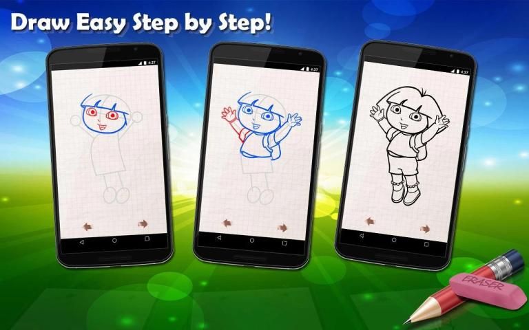 الآن نريد أن تظهر لك تطبيق يستند إلى "ألعاب درة". رسم أي "درة إكسبلورر" الطابع، مثل دورا، النعال، وسهلة الفتوة بمساعدة دليلنا على رسم !!