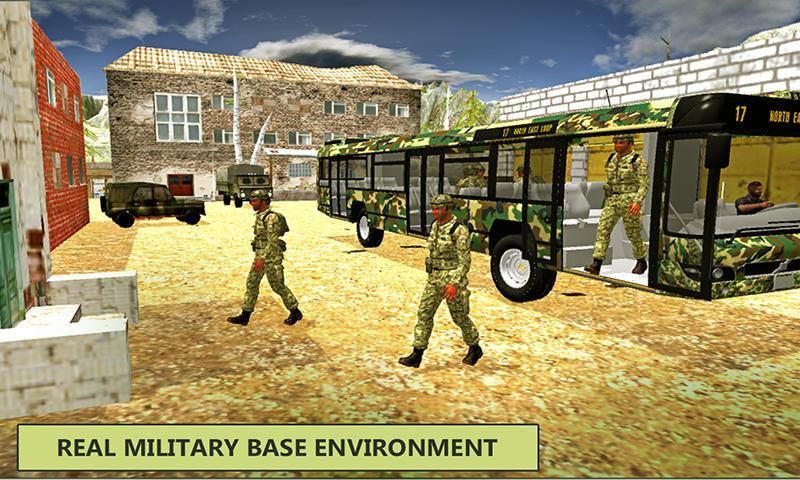 الجيش سائق الحافلة واجب 3D هو ليس مجرد محاكاة القيادة ولكن واجب مهني لنقل ضباط الجيش. أنها يمكن أن تحمل أسلحة ثقيلة أو ترسانة معهم فكذلك يكون حذرا مع القيادة الخاصة بك. تتمتع ساعة من دون توقف التشويق وقيادة حافلة للجيش. الفيزياء واقعية حافلة، سلاسة، مكابح الضغط والقيادة السريعة. الاستعداد لتلة بسرعة على الطرق الوعرة القيادة في هذه المحاكاة حافلة عسكرية 3D عام 2015. رجال العسكرية والقوات المسلحة والقوات الخاصة مشغولون في واجبك وعندما يحتاجون خدمة النقل سوف يكون رأس السائق لتزويدهم ذهاب وإياب. واجب الجيش ليس مهمة سهلة حتى تثبت نفسك كأفضل سائق الحافلة.