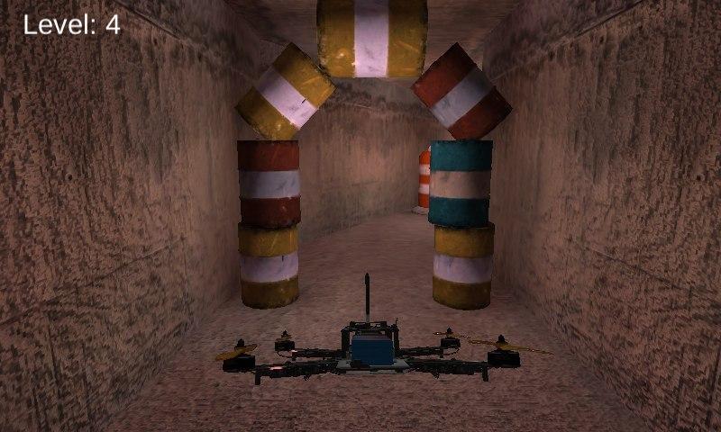 Complete levels by flying quadcopter in the narrow tunnel and between different obstacles.