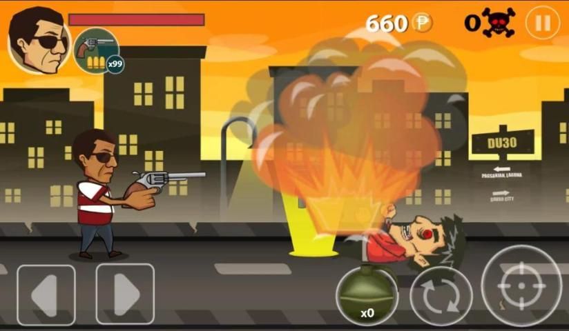 تلعب هذه الطبعة Duterte من لعبة القتال الجريمة عن طريق اطلاق النار على كل الأعداء أن ترسل لهم الجحيم. جمع الرصاص اضافية والقنابل والمال لترقية الأسلحة الخاصة بك. لا تدع أعدائك يضرب لك.