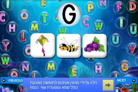 ويتحقق ذلك مع مساعدة من سماع الصوت الأبجدية التي لعبت من خلال ملف صوتي.