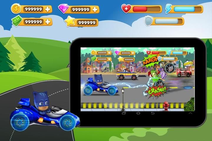 أقصى بيتاجول المتسابقين أقنعة لعبة ممتعة جدا للعب. تأتي مساعدة PJ-قناع لتدمير سيارة أبو بريص من خلال جمع "الصاروخ" واطلاق النار نحو الأعداء السيارة.