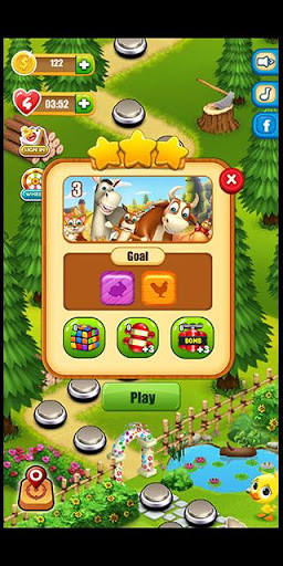 لعبة جديدة رائعة وغنية بالألوان من أجلك ومن أجل جميع اللاعبين الذين يستمتعون بألعاب مطابقة ثلاثة عناصر من نفس النوع متاحة الآن. وسوف تمنحك هذه اللعبة الأسطورية أنت وأصدقائك تجربة لعب رائعة. ساعد حيوانات مزرعتنا على إيجاد طريقها عبر مستويات التحدي والعوالم الجديدة وساعدهم على إنجاز المهام المطلوبة.