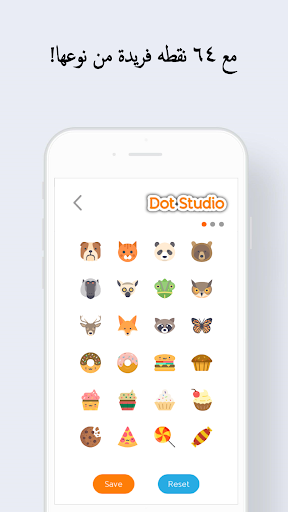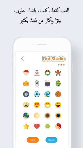 افتح دوت ستودیو و احصل على اكثر من ٦٠ نقطه مخصصه مثل القط ،الكلب ،الباندا ،الحلوى ،البیتزا ،الكعكه ،سانتا ،كرة القدم وأكثر من ذلك بكثیر.اجعل البحث عن وسيله تجربة شخصیة حقا.