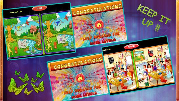 البحث عن لعبة الاختلافات مضحك هو مزيج من لعبة اللغز، لعبة الأشياء الخفية، والعثور على الاختلافات، بقعة اللعبة الفرق. حصرا وتصميم لعبة للأطفال الصغار والرضع والفتيات.