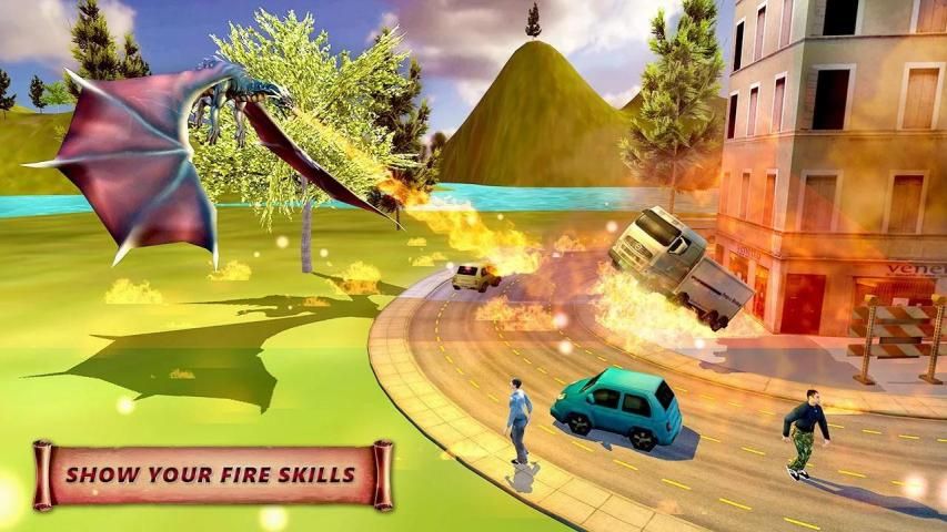 يمكنك يضر أهل المدينة التنين ويمكنك أيضا تدمير السيارات والمباني وغيرها من الامور على الطريق. عليك أن تقتل كل شيء متاح، وكلف وجعل التنين العالم أراضيكم في ألعاب محاكاة مدينة التنين.