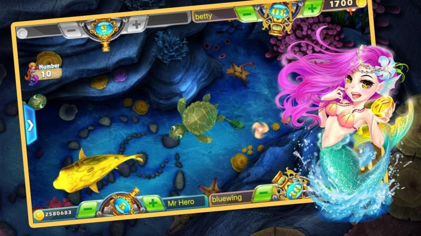 - أصناف كبيرة من المخلوقات الملونة البحر، وأنواع خاصة، وأكثر من 50 مختلفة من الأسماك و 4 حوريات البحر الجميلة، والتي هي نفس تلك الموجودة في آلة عملة لعبة الأسماك الحظ.