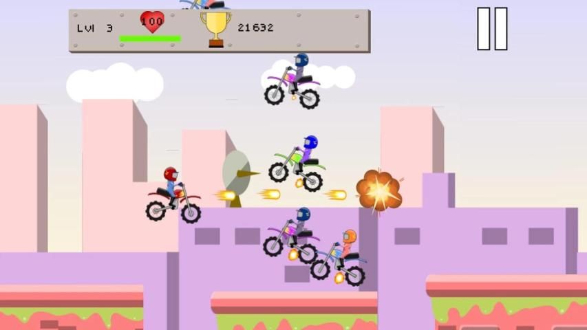ثقل الدراجة مكافحة الذباب والأعراق في تبادل لاطلاق النار مع الدراجات النارية الطيران الأخرى. A دراجة نارية الطيران الحديثة مجهزة المضادة التكنولوجيا الجاذبية والأعراق وتشارك في الحرب الجوية مع الدراجات الطيران الأخرى. استمتع المعارك واطلاق نار شديدة الانفجار فوق أسطح المدينة. يطير بقدر ما تستطيع للحصول على درجة عالية.