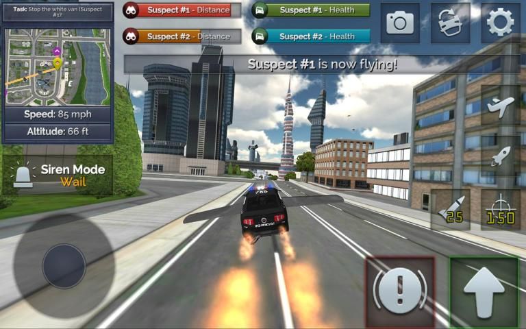 من السهل أن تطير ودفع في تحويل سريع، يمكنك الحصول على جميع أنحاء بيئة مفتوحة ضخمة في أسرع وقت ممكن للقبض على مجرم. احترس من السيارات الطائرة الأخرى!