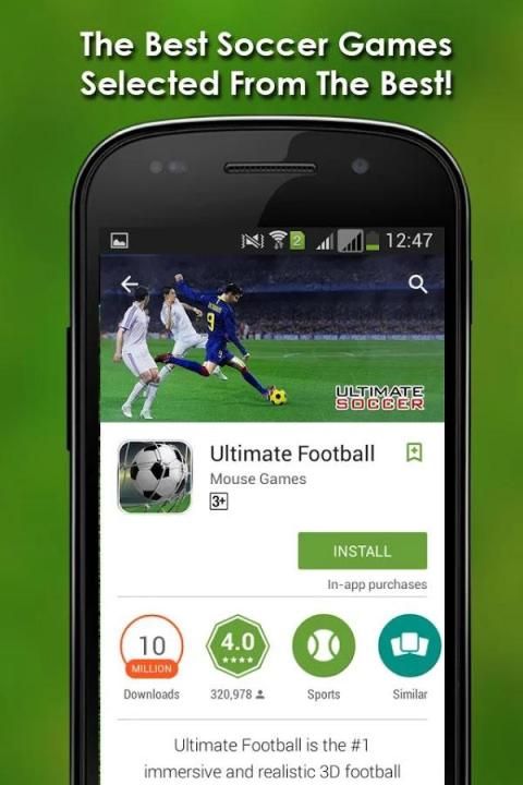 أنواع مختلفة من ألعاب كرة القدم اختار بدقة هي في التطبيق واحد. إذا كنت تريد أن تلعب الألعاب، تثبيتها. لا يمكنك اللعب بها على التطبيق لدينا، يتم توجيهك إلى السوق الروبوت لتثبيتها. يقدم هذا التطبيق طريقة بديلة للبحث الألعاب. يرجى ملاحظة أنه يتطلب الاتصال بشبكة الإنترنت.