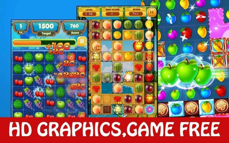 الفاكهة المرح سبلاش ماتش 3 كلاسيكي لديها الكثير لعبة الادمان اللعب، وهذا الفواكه والعصير دفقة لعبة حلوة ورائعة أفضل الألعاب المباراة 3 لغز. يجعلك الاستمرار في اللعب مجانا!