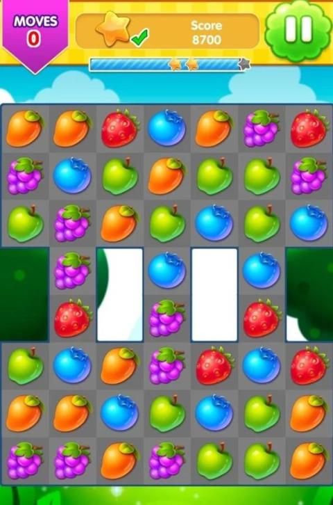 - مباراة (وصلة) 3 أو أكثر من نفس اللون عن طريق الفواكه على التوالي، عبر للقضاء عليها.