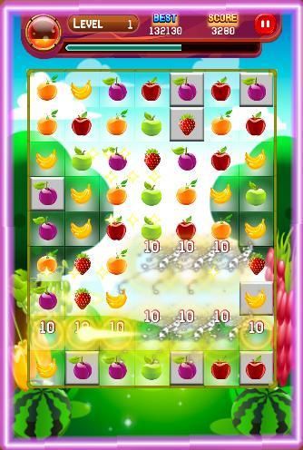 الحصول على نقطة بمحو الفاكهة. يمكنك جعل سلسلة طويلة من الفاكهة للحصول على المزيد من النقاط!