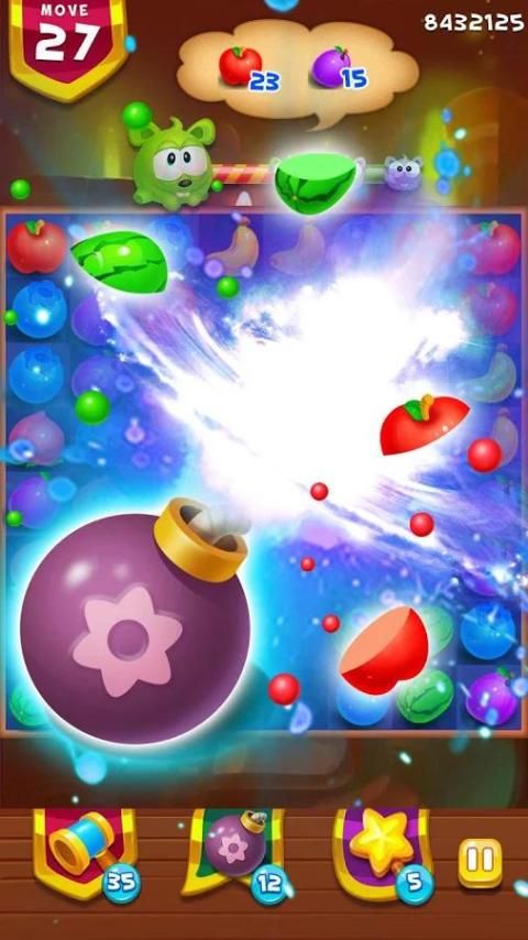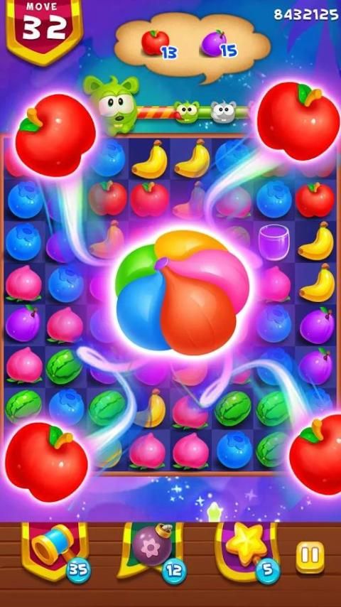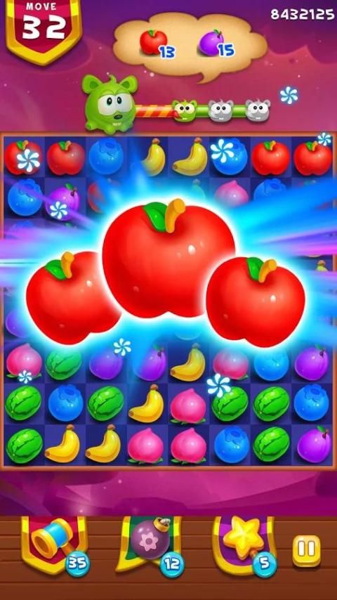 - المراوغة وإنشاء مجموعات من ثلاثة أو أكثر من ثلاثة الفاكهة إلى المنبثقة