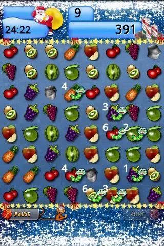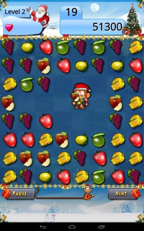 - الرسوم المتحركة سانتا يزيل جميع الفواكه في صف أو عمود، إذا كنت تثير له مع التحرير والسرد لطيفة من الفواكه المجاورة لهم