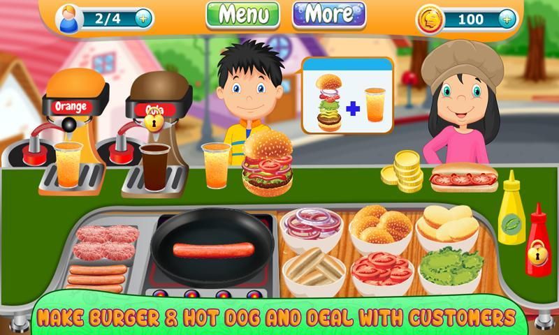 لديك سريع للعملاء مطعم يعانون من الجوع. لذلك، ومنحهم علاج من حياتهم في مقهى متعة مع البرغر والكلاب الساخنة، والآيس كريم والقهوة. هناك الكثير من المكونات التي سوف الحب في الأطعمة التي يختارونها. السماح لهم باختيار ما يريدون من لذيذ وممتع الفراولة، توت، كرز والبسكويت.