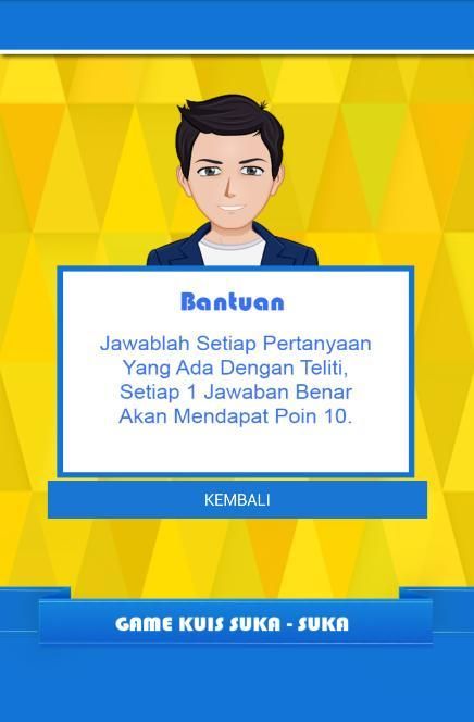 أقترح لك افضل تطبيق ذي كمية هائلة من التحميل 30,000+ مستحدمين يحملون Game Kuis Suka Suka احدث الاصدار مجانا كل أسبوع في هذه التطبيقات تتلقى ترحيبا حارا في المنطقة العربية..9Apps هذه التطبيق الحلوووه تصدر في 2016-07-01 بصراحة، انه ينتشر انتشارا واسعا لمدة طويلة..