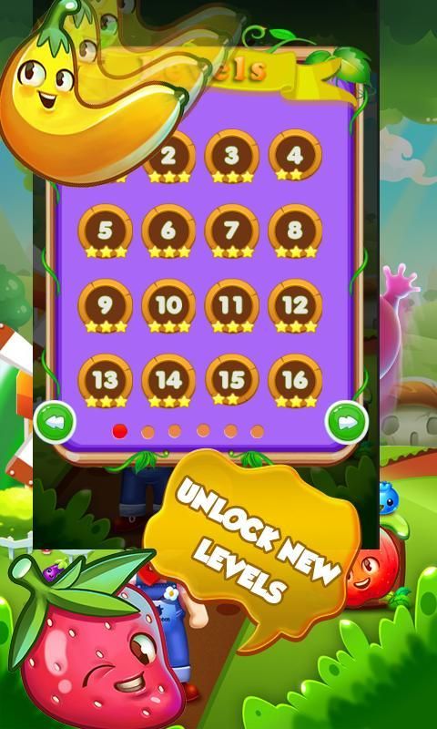 ربط خطوط ملونة من الفواكه لحل المستويات الصعبة في هذه المغامرة اللغز! واضحة ثلاثة أو أكثر من نفس الفواكه لتسجيل نقاط، في محاولة لاستخدام الدعائم لعبة لكسب المزيد من التحرير والسرد!