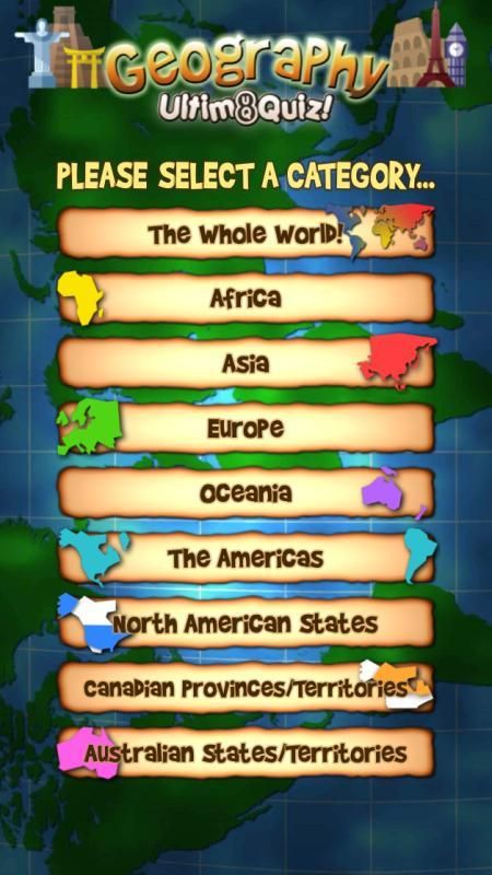 الأسئلة التافهة متعة تغطي أكثر من 300 بلدا / الجزر، بما في ذلك ولايات أمريكية، الأقاليم الكندية / الأراضي والولايات الأسترالية / الأقاليم. مثالية للاستخدام التعليمي والجغرافيا مراجعة الامتحان!