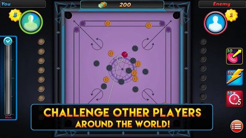 إذا كنت تتمتع اللعب بركة 8ball، كنت أحب بالتأكيد هذا واحد كذلك. كن جزءا من الجيل القادم من carrom الألعاب. مع هذا العدد الكبير من الأسماء لعبة